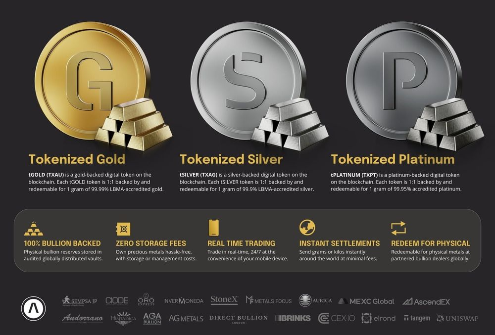 - Gold in Gaming (P2E): tGOLD and tSILVER as in-game currencies; gaming publisher partnership