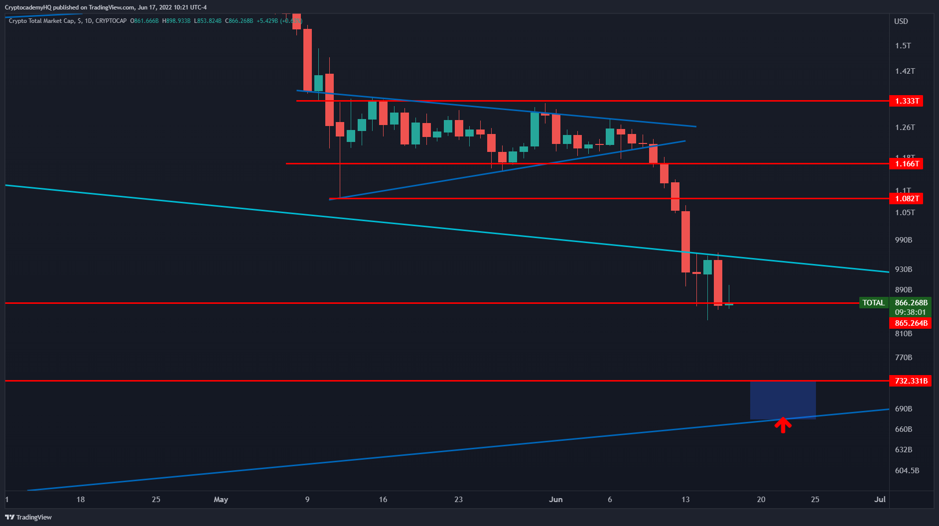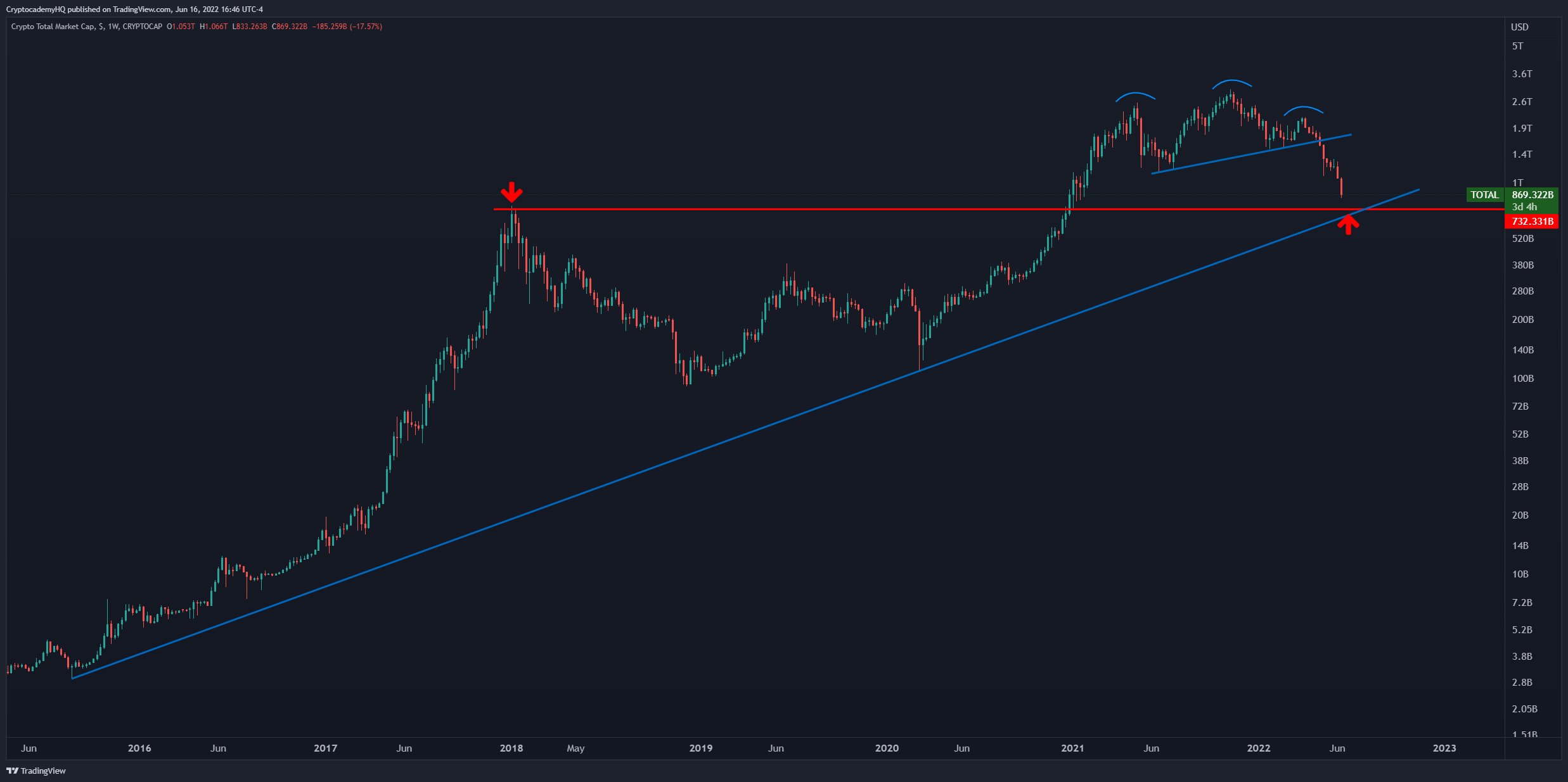 The crypto trader turns his attention to the total crypto market capitalization (TOTAL), reminding traders he expects the previous cycle peak will act as support for the current markets.